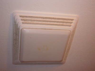 This bathroom vent fan cover is stopped up.